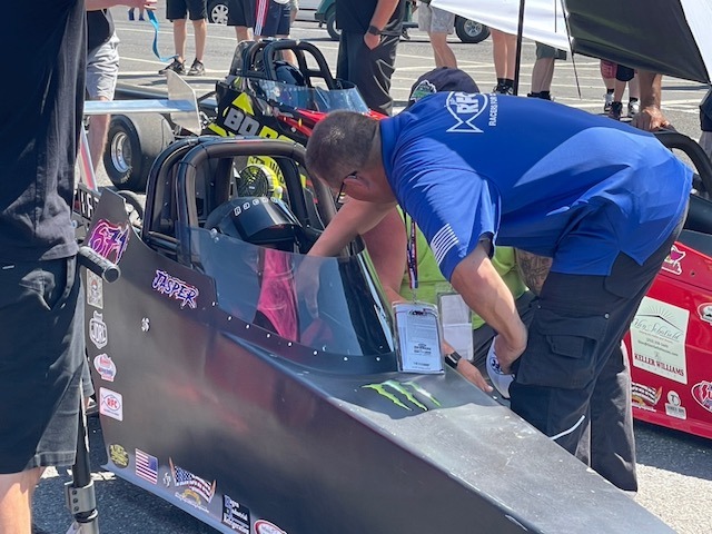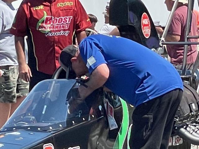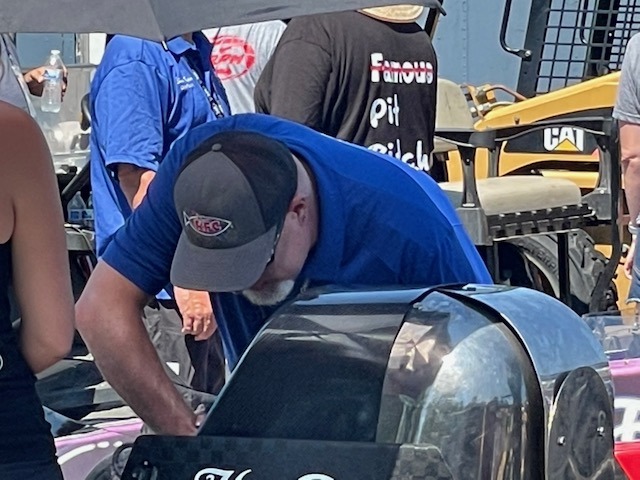 Tell us about a favorite “God sighting” at a motorsports event where you were serving. Linda likes to use the term “It’s a God thing” when something out of the blue just happens. At one of our events, a Top Dragster roadster not only went off the end of the track but also left the property. After a low seven-second run, the throttle stuck in the open position. By the time the driver had tried everything to shut the car down, he was already at the end of the track. With the motor finally off, the chutes didn’t deploy, the brake pedal broke, and he was still doing over 190 mph. He skimmed over the soft dirt designed to slow him down, plowed through a three-strand barbed wire fence, over an eight-foot-wide, five-foot-deep farm irrigation ditch, across a dirt road, and was headed for a group of people standing in front of a house. The car made a 90-degree left turn, mowed down a mailbox, went through a hedge, and missed a five-inch steel-pipe farm gate that was head-high pointing right at the driver, then into an apple orchard. He came to a stop five rows into the orchard without hitting a single tree. After all of that, without anyone being hurt, the driver was able to get out of the car and load the roadster back into its trailer. It was a “God thing,” for sure!